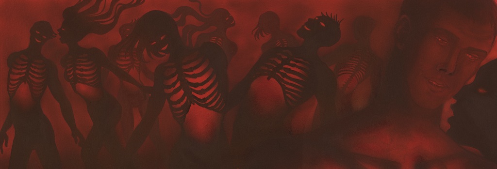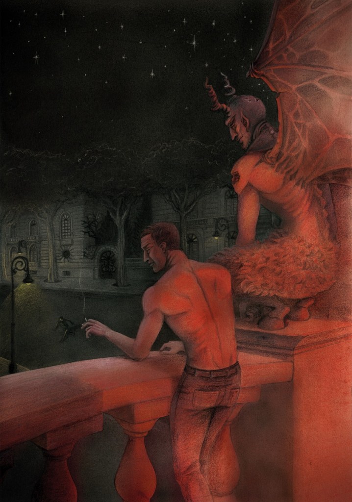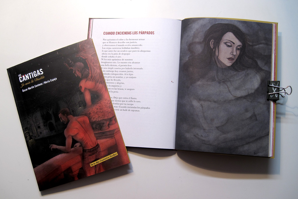 En 2012 tuve la suerte de ilustrar los maravillosos poemas de Óscar Martín Centeno en de Las Cántigas, Je suis le diable. Os dejo una muestra de las imágenes que realicé.