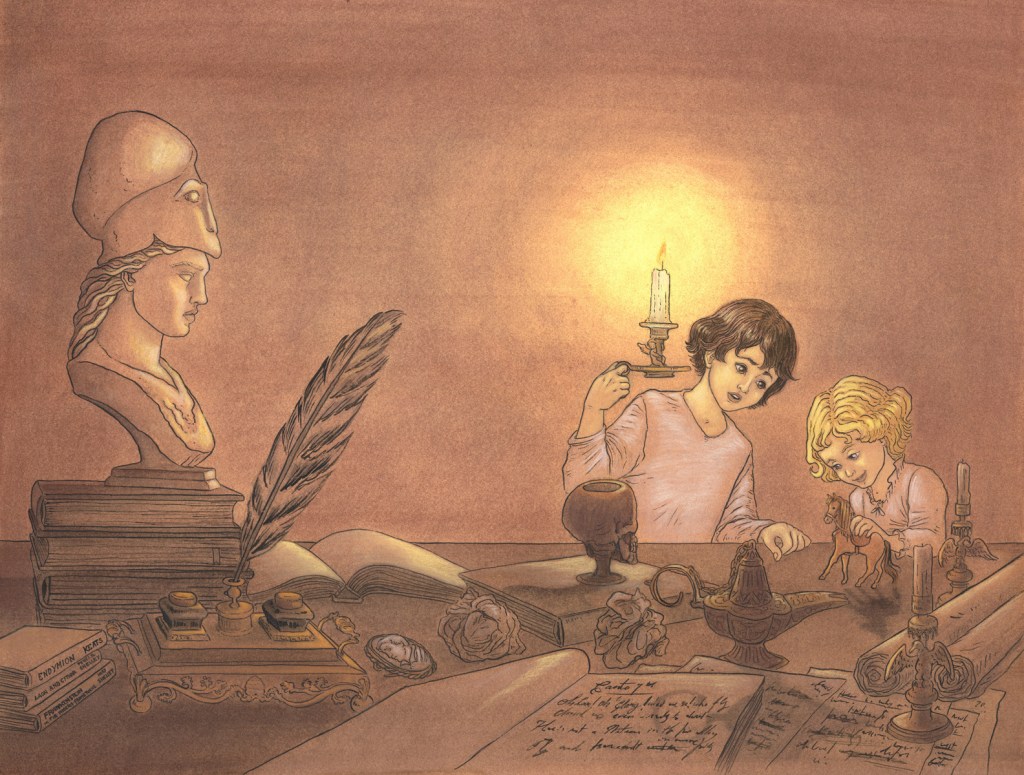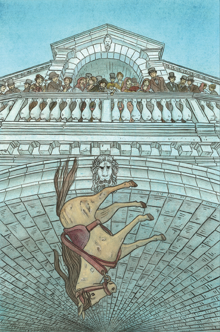 En 2018 ilustré El Caballo de Lord Byron, un cuento de Vanesa Pérez Sauquillo para ediciones Siruela, en el que tuve la oportunidad de dibujar a Lord Byron, una de mis personalidades favoritas en el mundo de la escritura, y el siglo XIX, época que me fascina desde la adolescencia. Ambientarlo, además, en una ciudad como Venecia a sido todo un placer. Este trabajo fue seleccionado por El Cultural como uno de los cinco mejores libros infantiles de la Feria del Libro de Madrid (2018).