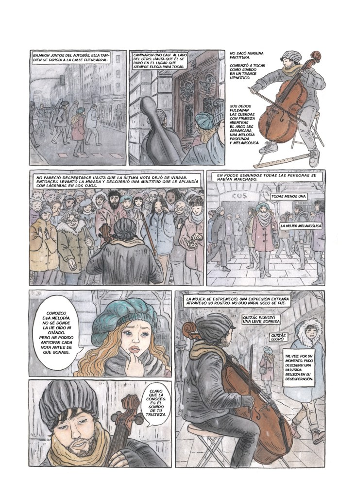 En 2019 colaboré en el número 23 de la revista madrileña M21 con éste cómic breve. La colaboración me ilusionó mucho porque, además de ser mi primer guion publicado, llevaba muchos años soñando con hacer cómic, junto a la ilustración, una de mis áreas preferidas desde muy pequeña en el mundo del dibujo.